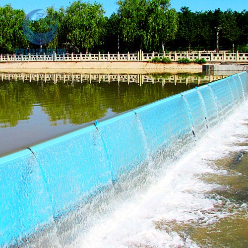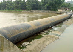 橡膠壩使用壽命短(橡膠壩采用的是再生橡膠原料,壩袋易老化,容易被上游漂浮物或尖銳物損壞,從而降低使用壽命);運(yùn)行管理難度大(洪水過后一旦壩面淤積較厚,要求人工清理,否則壩袋不能正常升起蓄水,增加了后期的人工費(fèi)用)。充水式橡膠壩冬季冰凍容易損壞壩袋,而充氣式橡膠壩不能調(diào)節(jié)壩高。