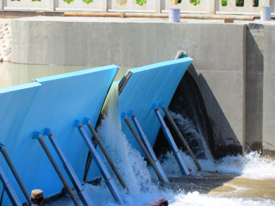 液壓壩既能達(dá)到橡膠壩能升能降的效果,又克服了橡膠壩安全性、可靠性、耐久性較差的缺點(diǎn),使用壽命是橡膠壩的五倍以上,壩體以底部為軸,無中墩設(shè)計(jì),放倒壩面后緊貼河床,排沙排漂效果好,再大的洪水都不會(huì)沖毀壩體,液壓活動(dòng)壩面操作簡單方便,升降壩面速度快。